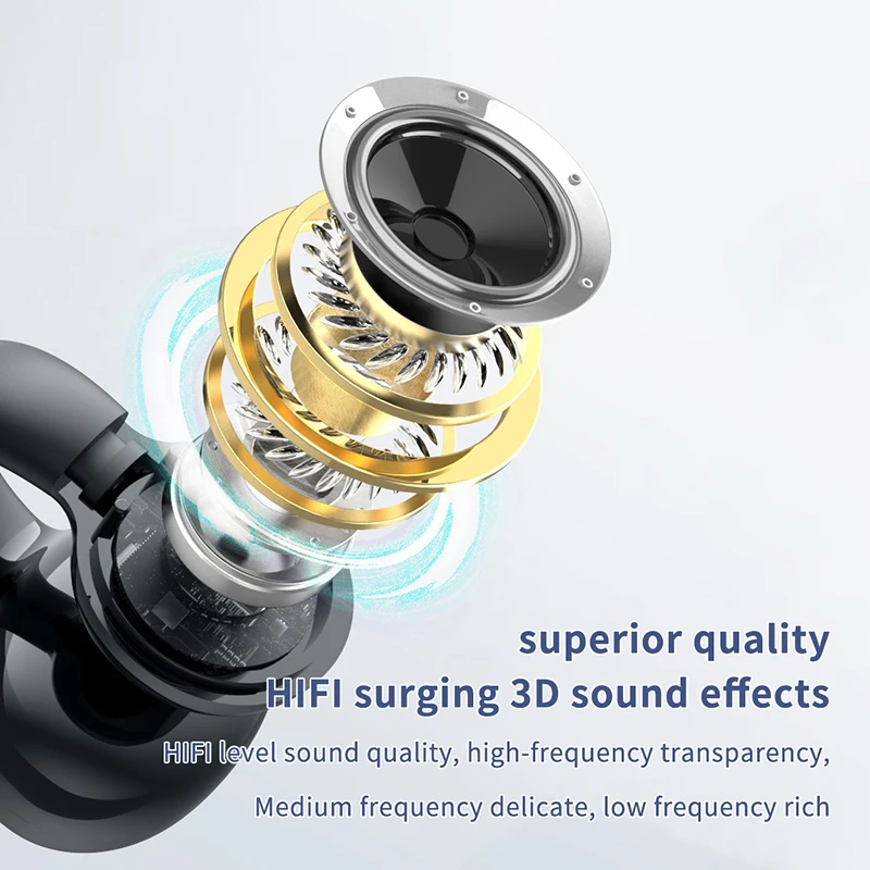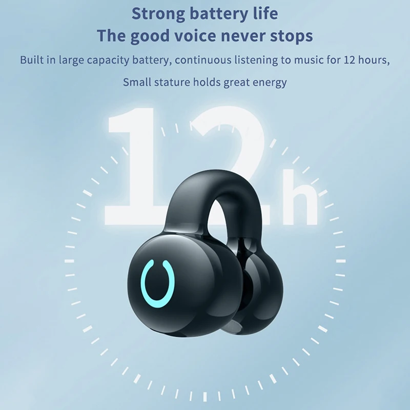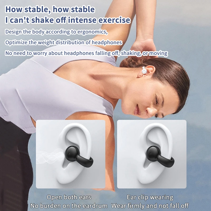 2. Clip-ear design: The clip-on design makes the headset more stable, without worrying about the headset falling during strenuous exercise, providing a lasting and comfortable wearing experience.