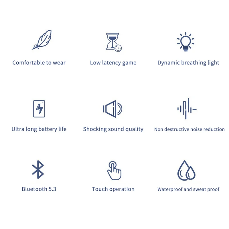 5. Large-capacity battery: The headset has a built-in large-capacity battery, which supports long-term continuous playback, even if you exercise for a long time, you don't need to worry about insufficient battery.